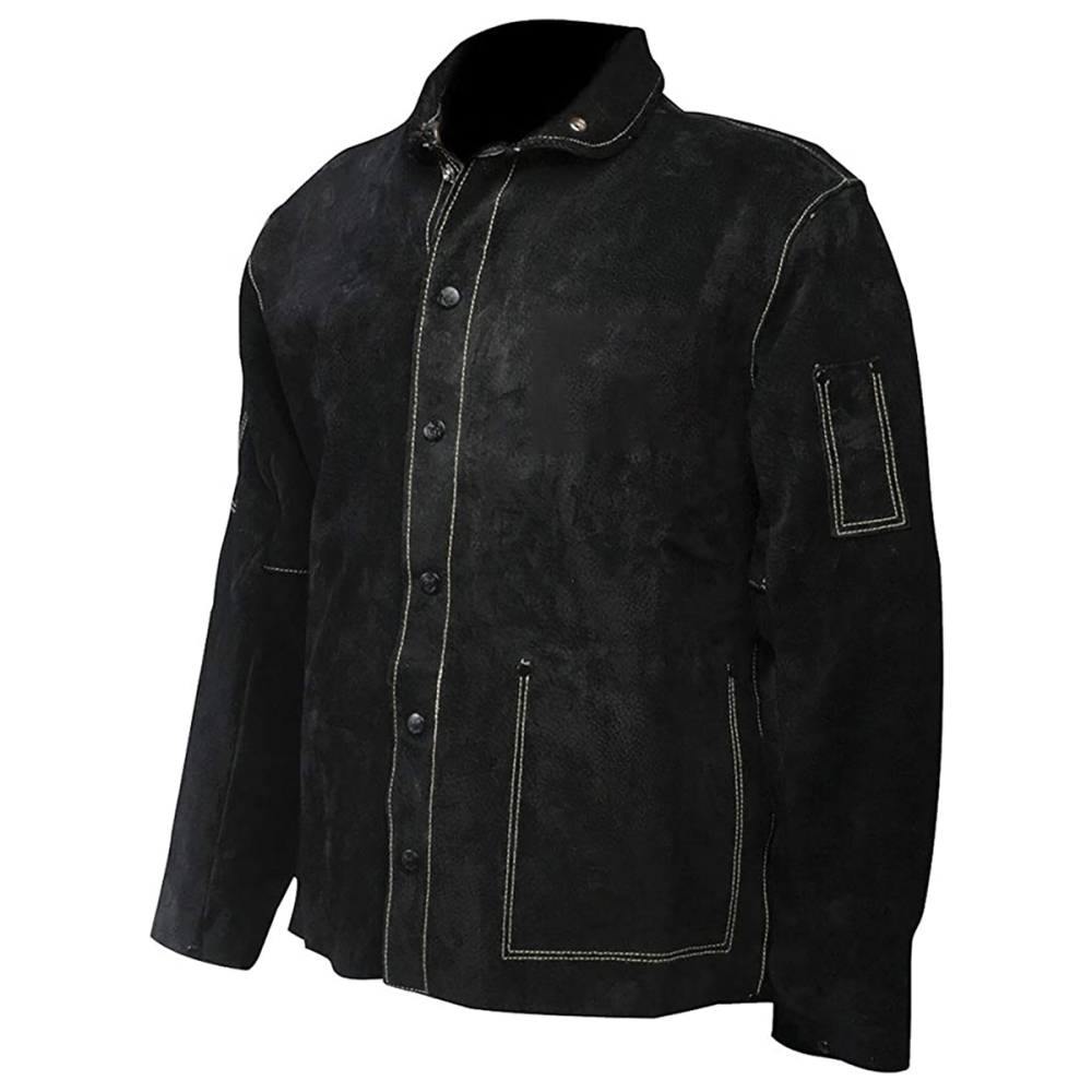 - This premium quality welding jacket is made from split cowhide leather and stitched with para-aramid thread.